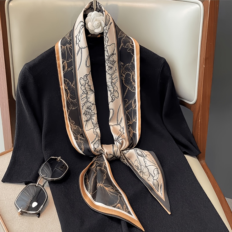 TEMU 빈티지 앵글 블랙 앤 골든 연꽃 패턴 롱 스카프. 부드럽고 매끄러운 질감으로, 벨트, 헤드 스카프, 넥 스카프 등 다용도로 활용 가능합니다.