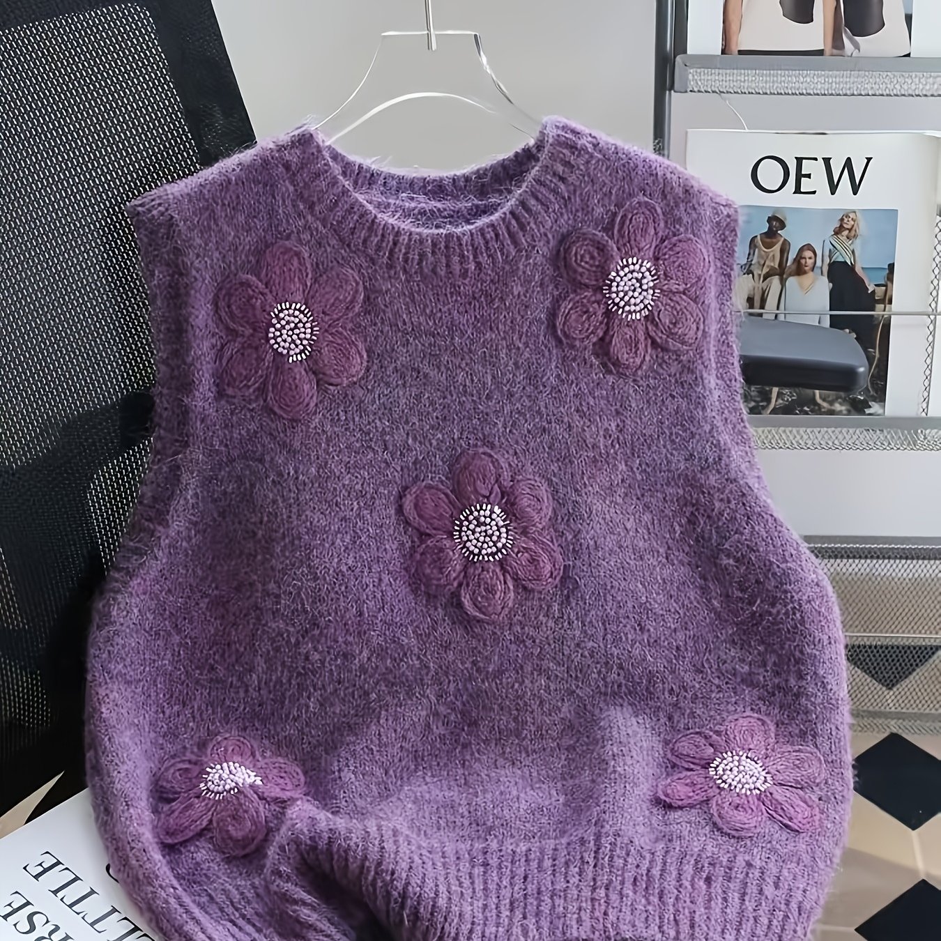 TEMU 여성용 헤비 플로럴 데리케이트 베스트, 2026 신상 봄 아우터, 고급 레이어드 슬리브리스 스웨터 베스트