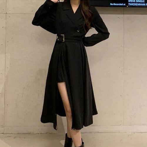 [에이치플러스몰]자켓형 롱원피스 랩디자인 벨트 트임 원피스 자켓