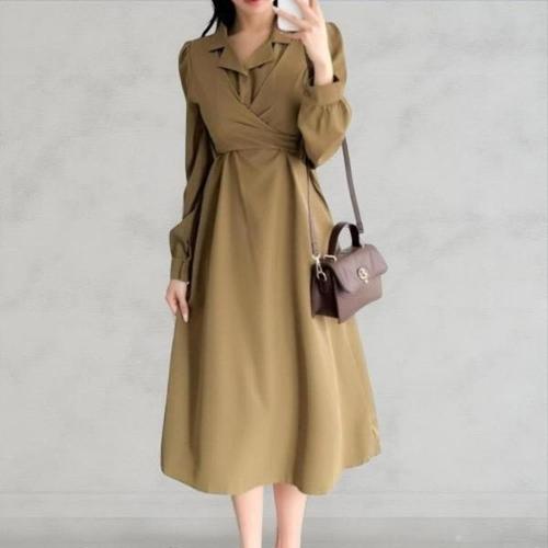 FANSYLI 여성 긴팔 티셔츠 원피스 봄 가을 신상 허리 트임 랩 원피스 패션 캐주얼 롱 원피스 W2508A31