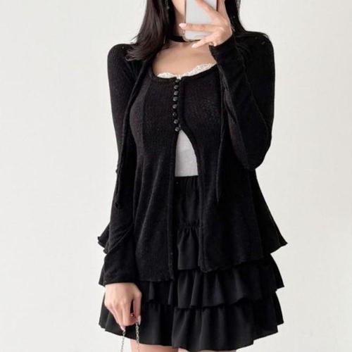 [다잇템][다잇템] 여성 트임 롱슬리브 레이스 후레아 넥스트랩 카디건_23592134_588872