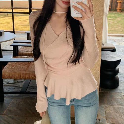 [옷자락]여자 데이트룩 러블리 페미닌 랩 니트