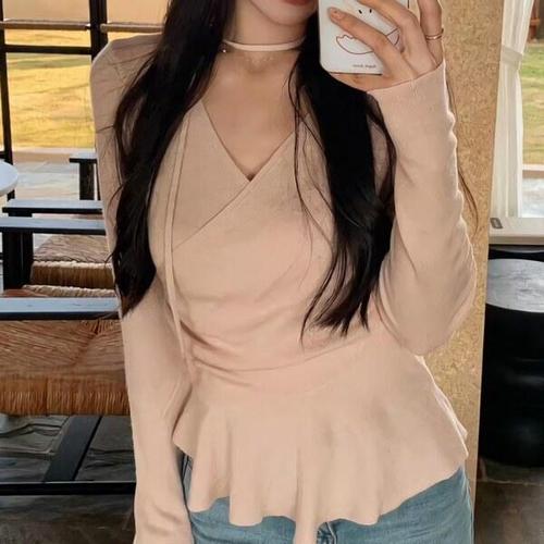 [디자이너몰]여성 봄 여름 데일리 타이 랩 셔링 니트