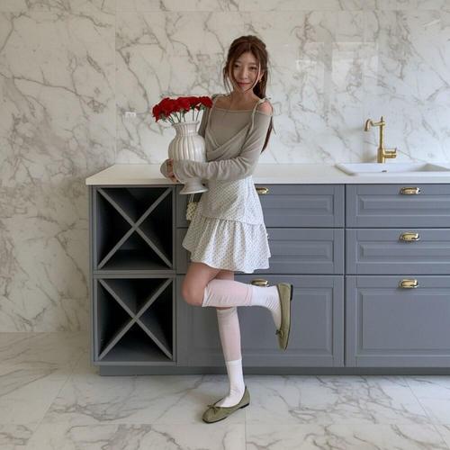 [미라클세븐]여성 리본 끈 오프숄더 레이어드 랩 니트