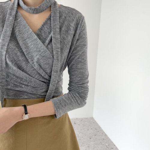 클루이가넷 / 에리 타이 브이넥 랩 긴팔 티셔츠 여성 가을핏