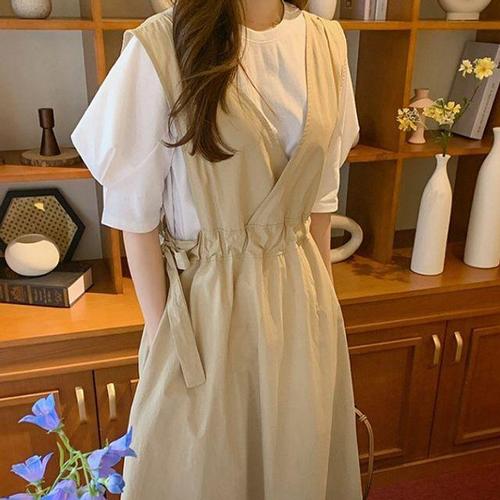 [오너클랜]인기상품 퍼프소매 티셔츠 레이어드 랩원피스 세트 캐주얼룩 [WFK82AO_260406]