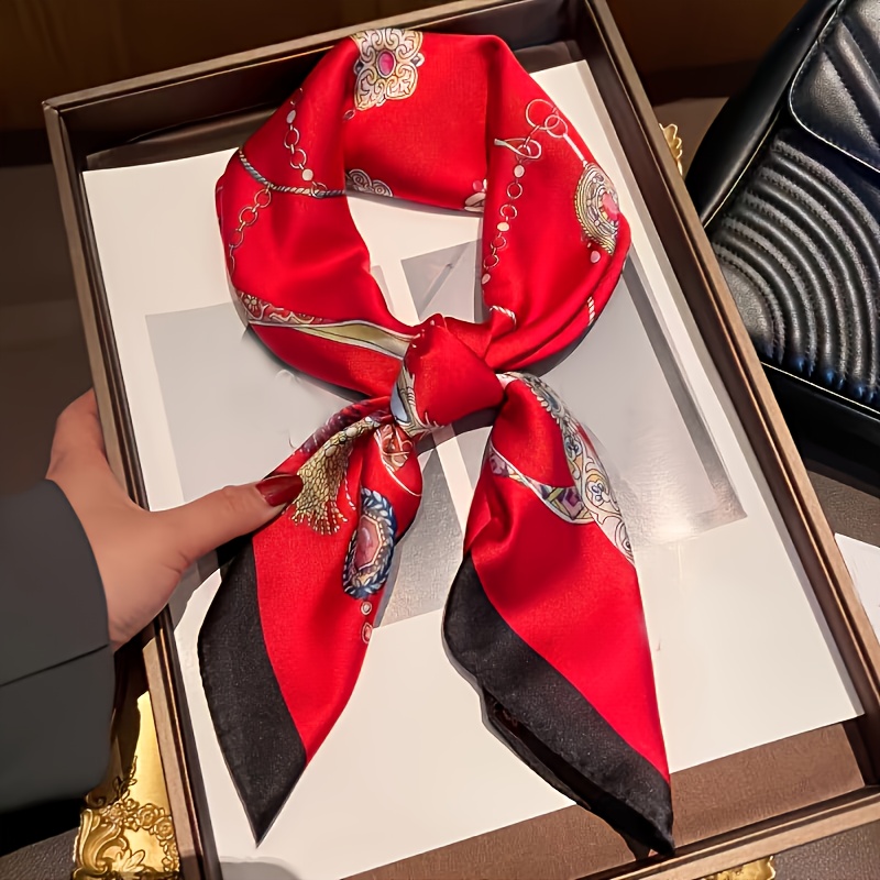 TEMU 우아한 레드 인조 보석 목걸이 패턴 스퀘어 스카프, Y 텍스처, 27.5인치, 다용도, 여성용 사계절 패션 액세서리