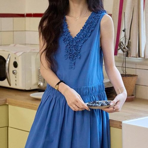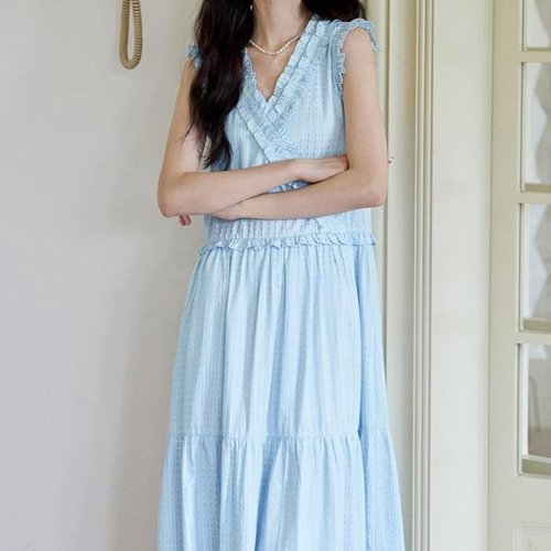 [패션시그널] 러플브이와이랩 민소매 롱원피스 860A06