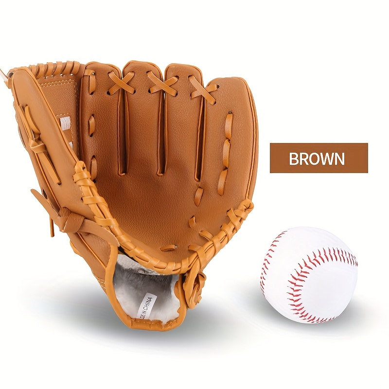 TEMU 2개 스포츠 야구 장갑 + 하드 야구공, 야구 장갑 외야 두꺼운 PU 장갑 청소년 성인 범용 투수 야구 장갑