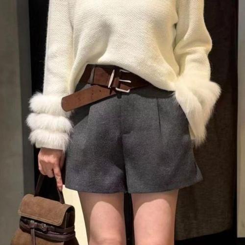 [신상오픈런]여성용 하이웨스트 숏팬츠 모직 벨트 겨울 가을 스타일