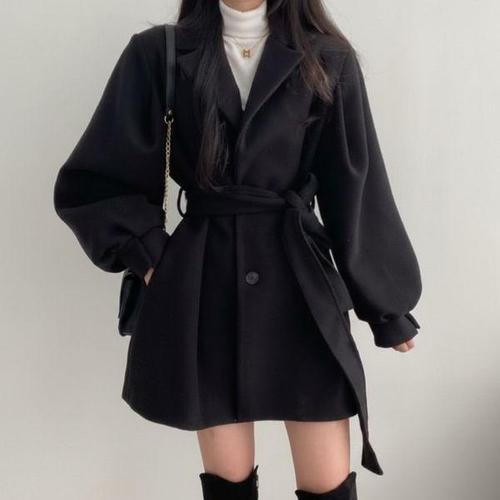 [신상오픈런]여성용 데일리 패션 고급 벌룬 소매 벨트 숏코트
