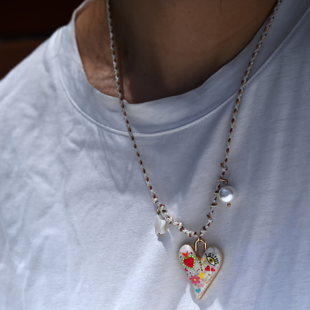 TEMU MOON 여성용 핸드메이드 로프 체인 목걸이 - 하트 펜던트 & 별 & 비즈, 멀티컬러 플로럴 & 하트 참, 스택 가능 데일리 & 페스티벌 주얼리, 내구성 있는 디자인 (변색 없음) - 새로운 디자인 여성 선물