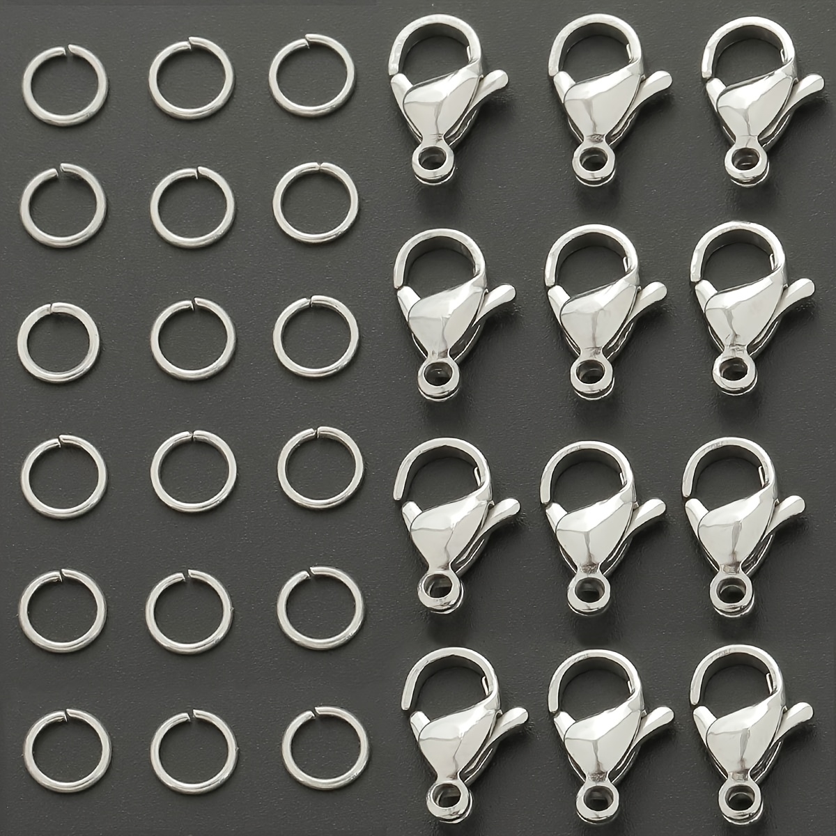 TEMU 20개 DIY 랍스터 클라스프 및 오픈 점프 링 세트, 랍스터 클라스프 10개와 오픈 점프 링 10개 포함, 주얼리 만들기용, 비즈 공예, 스페이서 비드 커넥터, 펜던트 목걸이 체인 클라스프, 폰 체인 키체인 클로저, 팔찌 액세서리