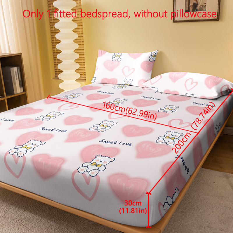 TEMU 만화 귀여운 핑크 하트 곰 패턴 프린트 브러시드 피티드 시트 1개, 침실용 프린트 침대보, 침구 (베개 커버 미포함)