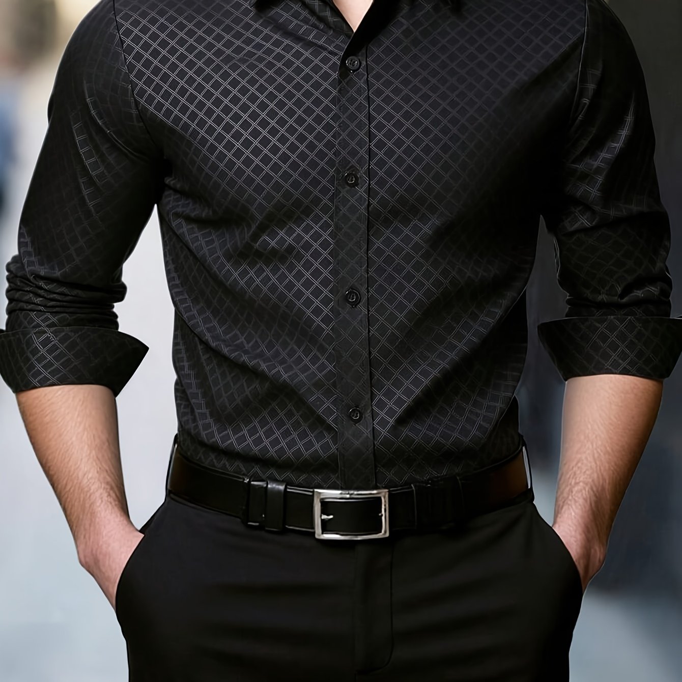 TEMU 유럽 사이즈 1831 출입구 제어 행잉 페이스 363 버전 육각형 체크 엠보싱 격자무늬 비즈니스 패션 셔츠