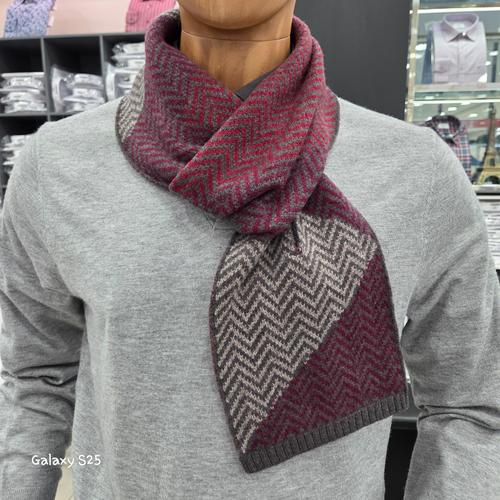 [레노마셔츠][밴브루] 캐시미어100 기하학 패턴 머플러/쁘띠 양면 목도리 BOFT