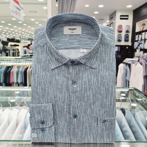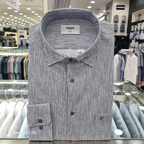NC 불광점 레노마 # 백화점 이월 상품 #블루 100수 고퀄리트 면 100% 모던 핀 스트라이프 슬림 핏 긴 팔 셔츠 RNSSL1-132-BU