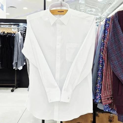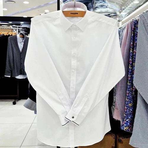[백화점 정품] 레노마셔츠 남성 스판 화이트 일반핏 긴팔 와이셔츠