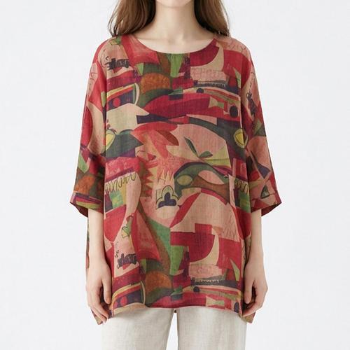 화세 레드아트패치오버핏블라우스_HB6MBL008C