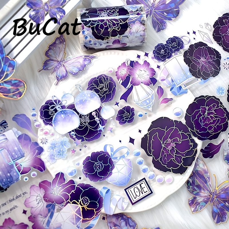 TEMU 2M/롤 레이저 은색 보라색 꽃 나비 PET 테이프 (보라색 별 포함), 스티커 스크랩북, 다이어리, 카드 제작 및 문구류 장식용: 루프 100Cm