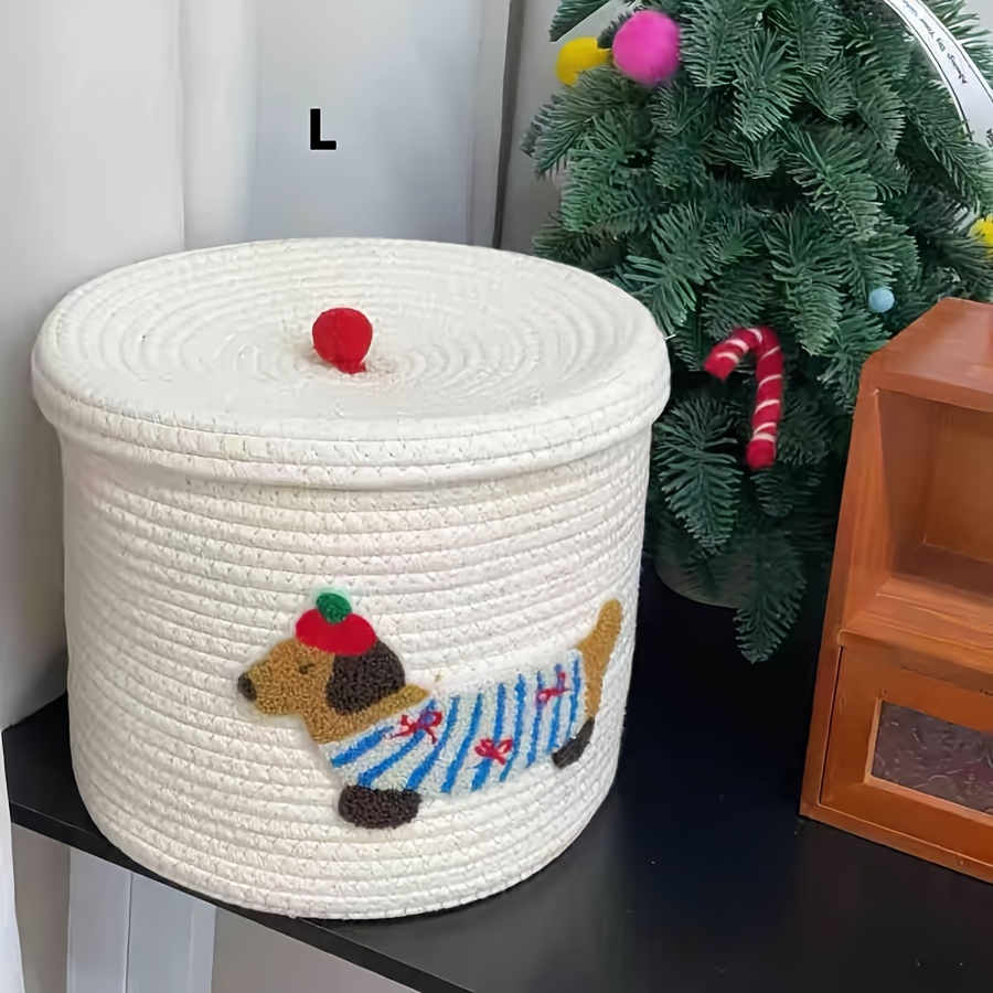 TEMU 대용량 손으로 짠 보관 바구니/바스켓 - 뚜껑 포함, 세탁실·욕실·거실·침실 정리함, 튼튼한 천 소재 오픈형 멀티퍼포즈 홈 데코 오거나이저, 모던 팜하우스 스타일, 아파트 거주자 선물, 고품질 직조, 현대적 디자인, 셸프 바스켓|욕실선반|빨래바구니|수납정리함