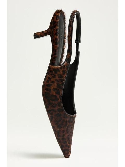 [에이치엔엠] 힐 레더 슬링백 슈즈 브라운/이미테이션 레오파드 1296730003