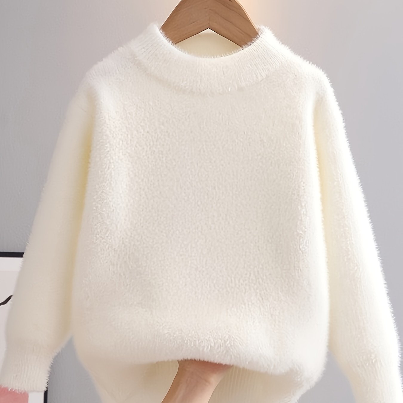 TEMU 여아 솔리드 컬러 스웨터, 스타일리시한 두꺼운 인조 밍크 풀오버, 가을/겨울용, 어린이 및 유아용, 니트