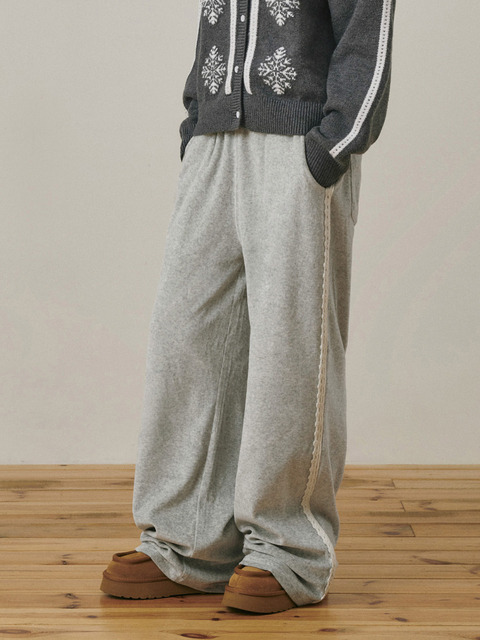 [벨로엘] 벨벳 레이스 트랙 팬츠 멜란지