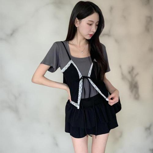 [다잇템]여성 코디 코르셋 스트랩 키치 레이스 스타일