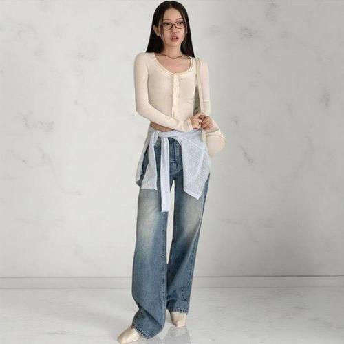 [다잇템]여성 면혼합 스트랩 카디건 레이스 U넥 스판