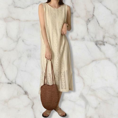 [오너클랜]인기상품 크로쉐 레이스 민소매 롱원피스 내추럴 휴양지룩 [WFK80BC_260406]