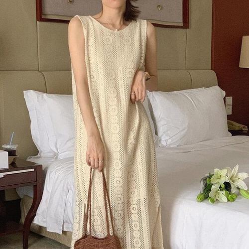 [미라클세븐]여성용 여름 시스루 레이스 나시 롱 드레스