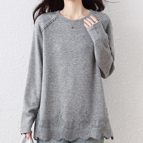 [모슬린]엄마옷 레이스 라운드 니트긴팔 롱티셔츠 602FGH070 마담/중년여성/빅사이즈/50대/60대