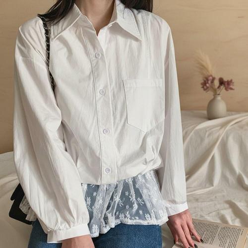 [다잇템][다잇템] 여자 레이스 카라 박시핏 마원단 면혼방 롱슬리브 셔츠_24739595_588872