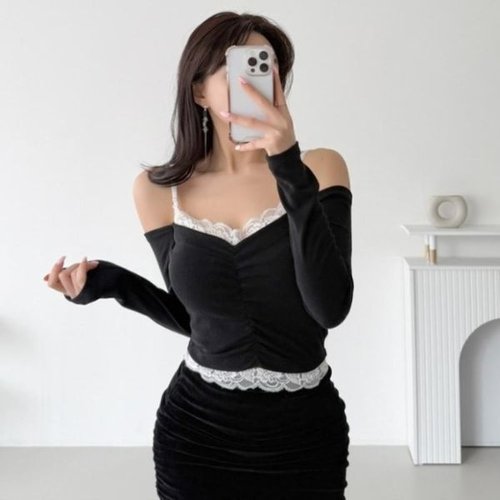 [다잇템]여성 포인트 코르셋 레이스 비대칭 나시