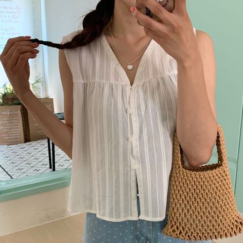 여름블라우스 민소매 쉬폰 레이스 블라우스 여름 브라우스 WFJC0G1