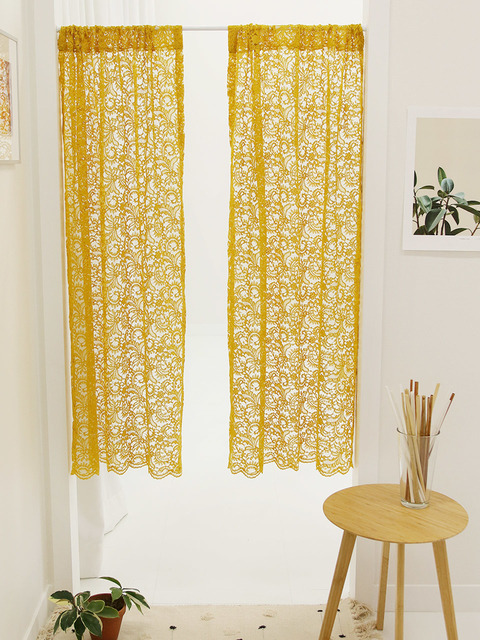 [바이지미] 작은창가리개 커튼-머스터드 플라워 레이스