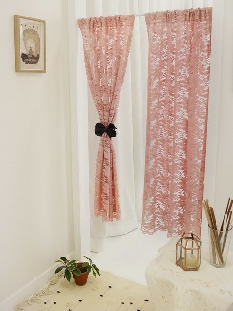 [바이지미] 작은창가리개 커튼-핑크 베고니아 레이스