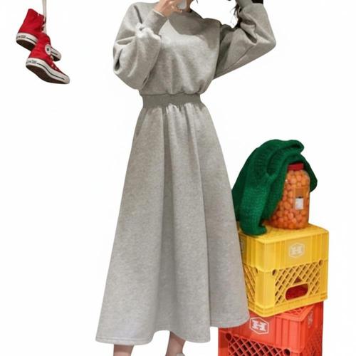 |CCO598A|여성용 봄 시즌 데일리 맨투맨 플레어 원피스