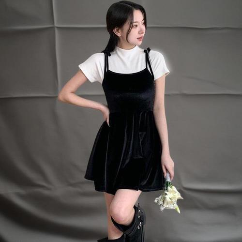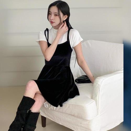 |KMO5929|여성 벨벳 미니원피스 플레어형 데이트룩
