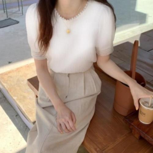 [옷자락]여자 데이트룩 청순 레이어드 반팔 니트
