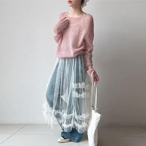 여성 힙커버 시스루 레이어드 랩스커트 1P 리본 레이스 랩업