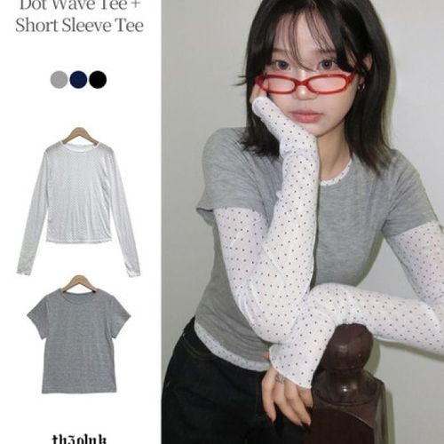 더핑크 / 로파 레이어드 도트 물결 긴팔티 반팔티 set