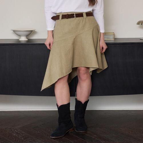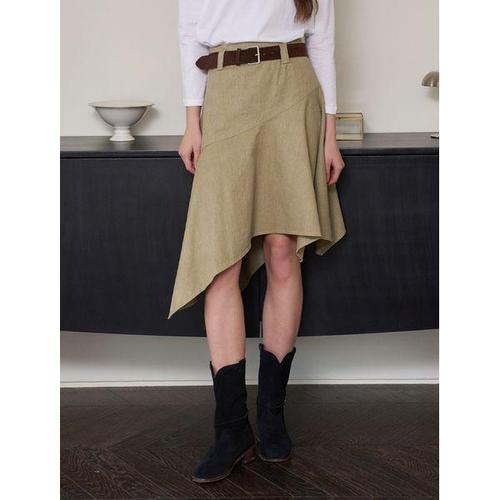 [위시드]벨트 레이어드 언발란스 미디 스커트 (WICCSK005)