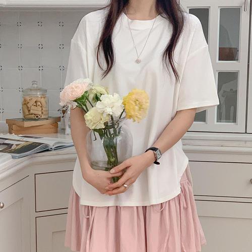[옷자락]여성 레이어드 티셔츠 힙 덮는 박시 루즈핏 반팔 이너 티