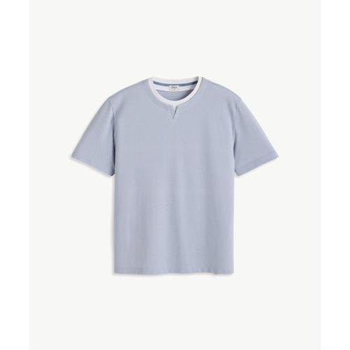 [에스티코]레이어드 슬릿넥 반팔 티셔츠_블루 (세미오버핏)_STSXB03NSL