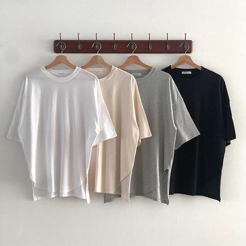 국내제작 20수 레이어드 오버핏 반팔 티셔츠 옆트임 순면 무지 롱 이너 반팔티