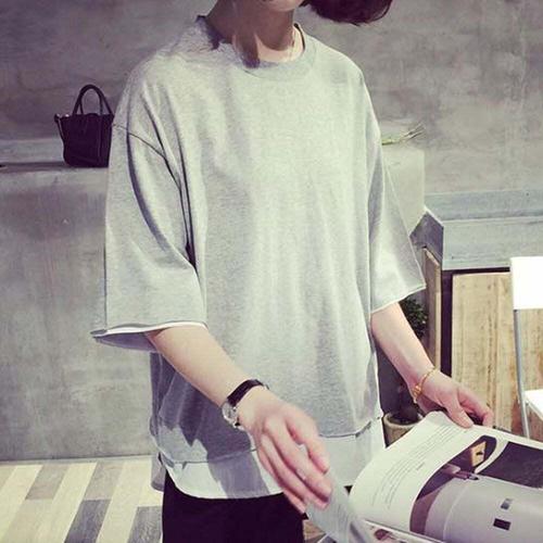 남성 트렌디 레이어드 루즈핏 반팔티셔츠 7컬러