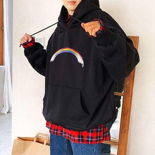 기모안감 후드티 남성 루즈핏 레인보우 후드 티셔츠 WFK5MN6