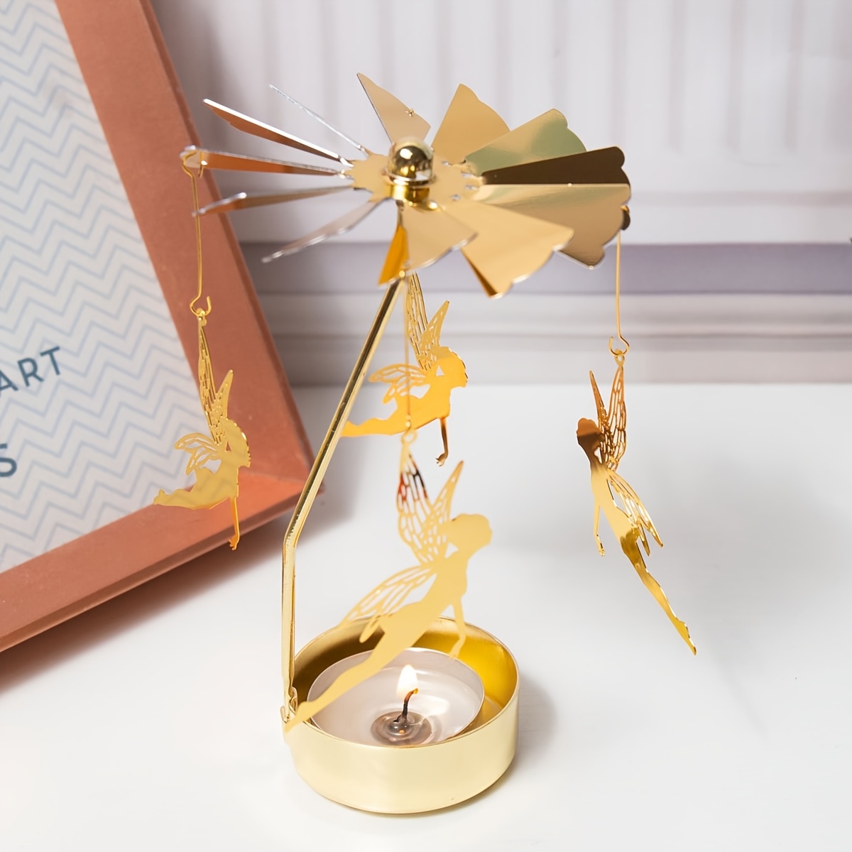 TEMU 회전하는 금색 촛대 홀더 1개, 테이블용 창의적인 장식품, 크리스마스, 저녁 파티, 결혼식에 적합하며 기념일 및 생일 선물로도 완벽하며 데이트 분위기를 향상시킵니다.